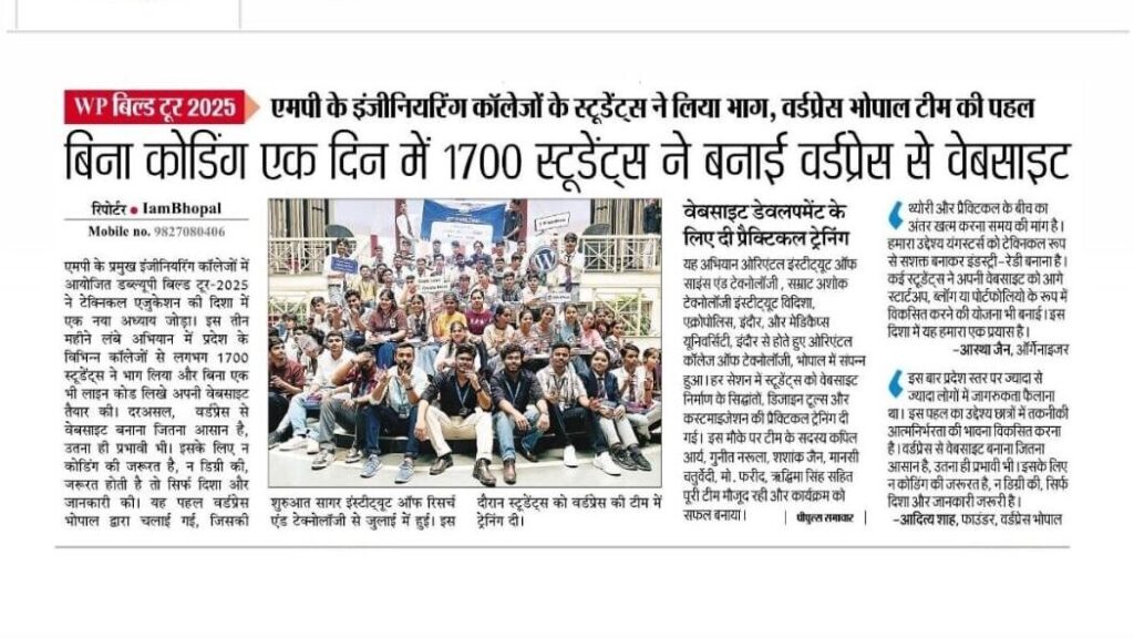 I still vividly remember while pitching sponsors for WordCamp Bhopal 2023, the idea kept resurfacing: the student community must benefit from this. The lack of exposure and the gap between theory & practical skills is profusely felt. Aditya often mentions that when he started with WordPress, it was purely out of his own interest, not something taught or exposed to him in his institute. For him, building websites was uncommon among his batchmates. And the truth is, the situation hasn’t changed, and we still need revitalisation to help the youth realise their potential. This became the agenda of this initiative.