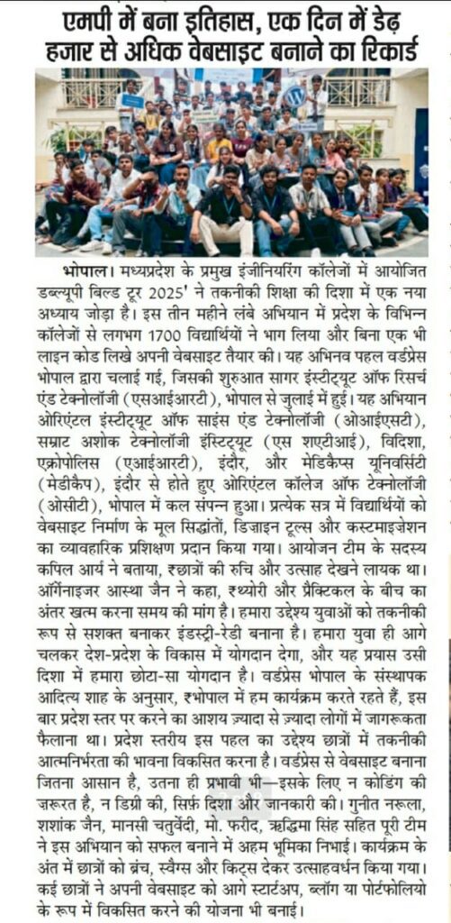 But there was consensus in the team that even if just one kid shows up, we’ll keep going. And guess what? Not only did they come back, they jumped in with full energy. Doubts, queries, ideas, thoughts—their enthusiasm blew us away. It’s hard to put into words how fascinating it was to see the effort actually paying off. By the end, every participant had not just knowledge but something concrete: a live website, their website! Photos, reels, and hashtags like #WPBuildTourBPL amplified the energy far beyond the classrooms.